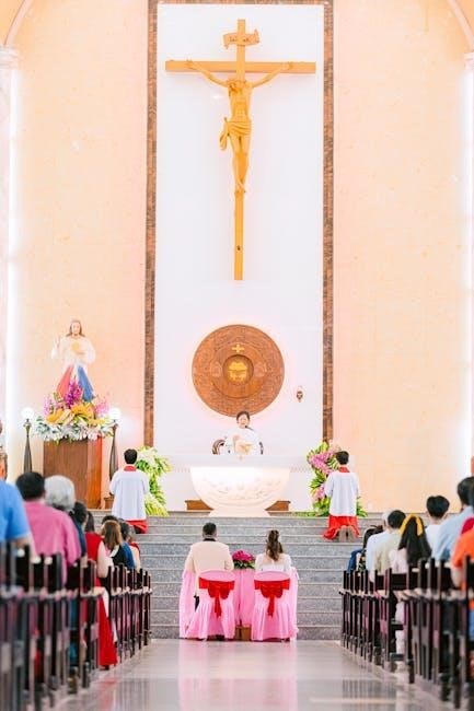 The Eucharistic Prayer, central to the Liturgy of the Eucharist and outlined in a roman catholic funeral mass order of service PDF, is the heart of the Mass. The priest, acting in persona Christi, leads the congregation in a profound prayer of thanksgiving and consecration.